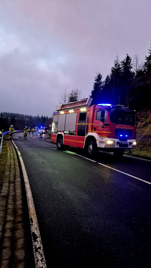 Die Feuerwehr wurde zu einem Verkehrsunfall auf der B241 zwischen Auerhahn und Glockenbergkurve alarmiert. Ein PKW war in einer Kurve auf einen Hang geschleudert, im Anschluss quer über die Fahrbahn in die Leitplanke eingeschlagen und verlor große Mengen von Betriebsstoffen. Die Betriebsstoffe wurden eingedämmt und abgestreut und von einer Fachfirma später aufgenommen.